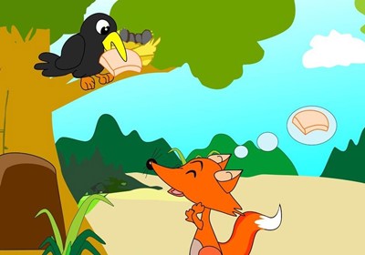 他便站在树下,大肆夸奖乌鸦的身体魁悟、羽毛美丽,还说他应该成为鸟类之王,若能发出声音,那就更当之无愧了。乌鸦为了要显示他能发出声音,便张嘴放声大叫,而那块肉掉到了树下。