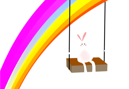 小兔子把嘴巴张开,彩虹真的跑了出来,现在小兔子恢复了雪白的颜色,森林里的动物们又能看见美丽的彩虹了。