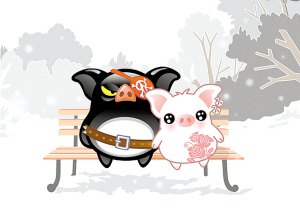 瞧,小白猪和小黑猪肩并肩坐着,一起抱着“山芋王”,他们笑得甜甜的。